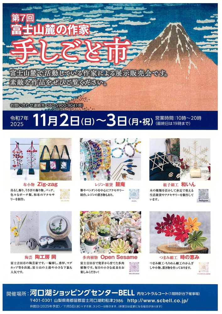 富士山麓で活躍している手づくり作家による作品の展示販売を開催いたします。